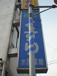 んと鉄柱に看板の模様が書いてある。