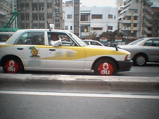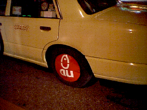 バスなど走る広告はよく見かけるが、広告タイヤホイールのタクシーは初めてだ。